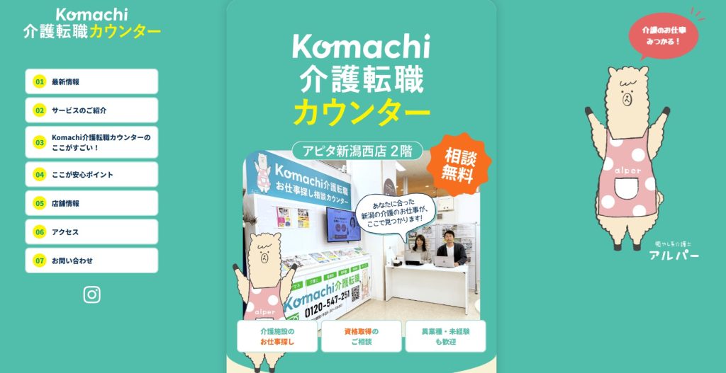 ★エージェントと直接会って転職の相談をご希望の方は、新潟市西区にありますアピタ新潟西店2階にある「Komachi介護転職カウンター」にて受けたまります。