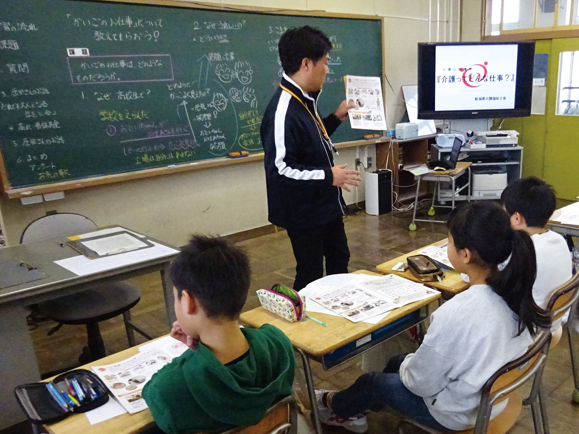 新潟県介護福祉士会は新潟県からの委託を受けて、平成28年度から、介護の仕事の価値観の向上、普及啓発のための取り組みを実施しております。県内の現役介護福祉士らがPR隊となって、小・中・高校等への学校訪問(出前講座)に赴き、講義や体験を通して介護の魅力及び仕事内容、必要性や「やりがい」を伝えます。総合学習やキャリア教育の一環として本事業を多くご利用いただいています。