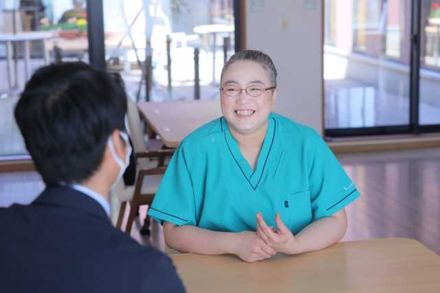 どんな職場でも最初はみなさん不安でいっぱいかと思います。そんな時は先輩職員が全員でその一人をサポートします。部署の責任者はもちろん、他部署からもサポートします。看護師が多く配置されているため、医療の知識が必要な時も安心して相談することができます。