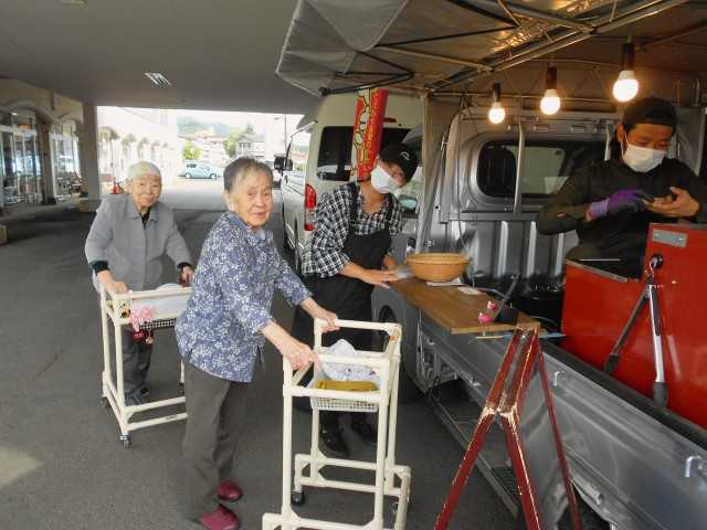 地域とのつながりを深める取り組みを進めています。隣接するヴィラ上町では、キッチンカーによる焼き芋・たい焼きの販売や、今後は就労事業所のカレー販売を企画中で、地域住民との交流が生まれています。デイサービスでも同様に、地域の方々とのふれあいや、利用者同士のつながりが生まれる場を目指しています。レクリエーションプログラムも充実しており、同級生やお友達との再会・新たな出会いの機会にもなっています。