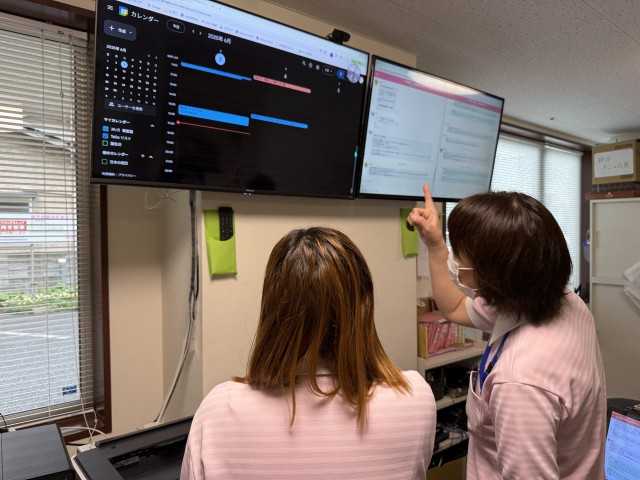 社内SNSやディスプレイを導入し、情報共有のペーパーレス化を実現。スマホで出勤前に業務情報を確認でき、早出の必要がなくなりました。通知の設定も自由に調整可能で、休日には通知を切ることでストレス軽減に成功。幹部から段階的に導入し、現場の負担を抑えながらスムーズに定着しました。情報の共有がスムーズになったことで仕事のしやすさや円滑なコミュニケーションにも繋がっています。
