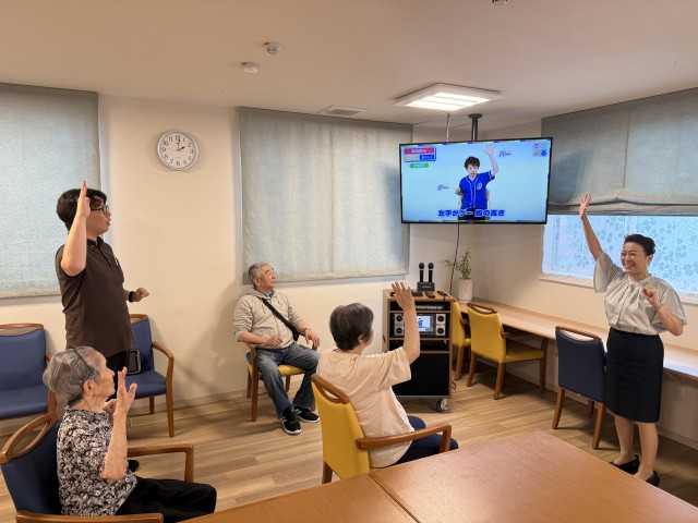 介護現場にインカムを導入し、会話や会議内容を音声入力で自動記録されます。そのため手書き作業が不要になり、記録業務時間を83%削減!その分、利用者との関わりやアクティビティの時間が増え、笑顔があふれる毎日が送れているため、職員も楽しく働くことができています。取材当日もアクティビティを楽しむ利用者と職員の笑顔にあふれていました。業務の効率化が、質の高い介護を支えます。