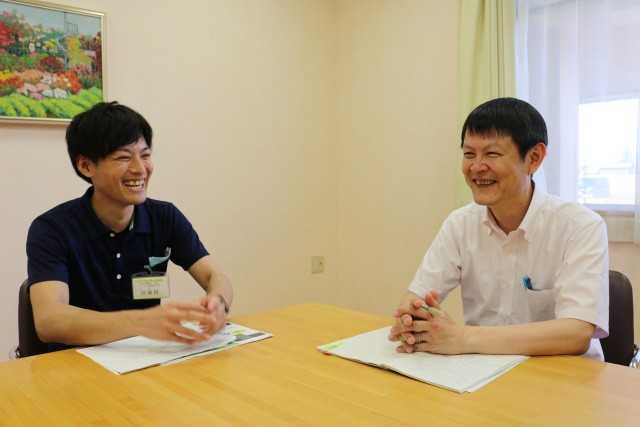 リハビリセンター王見台の久保田さん(サービス管理責任者)、老人保健施設サンプラザ長岡の坂井さん(3F介護リーダー)からお話しを伺いました。